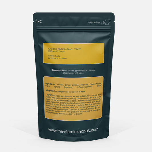Turmeric 2500mg, Ginger & Black Pepper - A Natural Anti-Inflammatory | Vegan | High Strength (180 Tablets)
